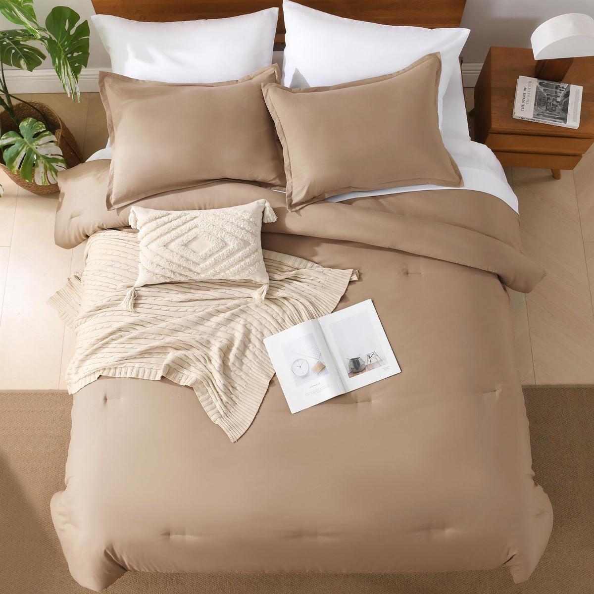 Andency Taupe Queen Comforter Set - 7 Pieces Khaki Tan Bed In A Bag Queen Bedding Comforter Sets, Summer Solid Soft Lightweight Comforter With Fitted Sheets, Flat Sheets, Pillowcases & Shams