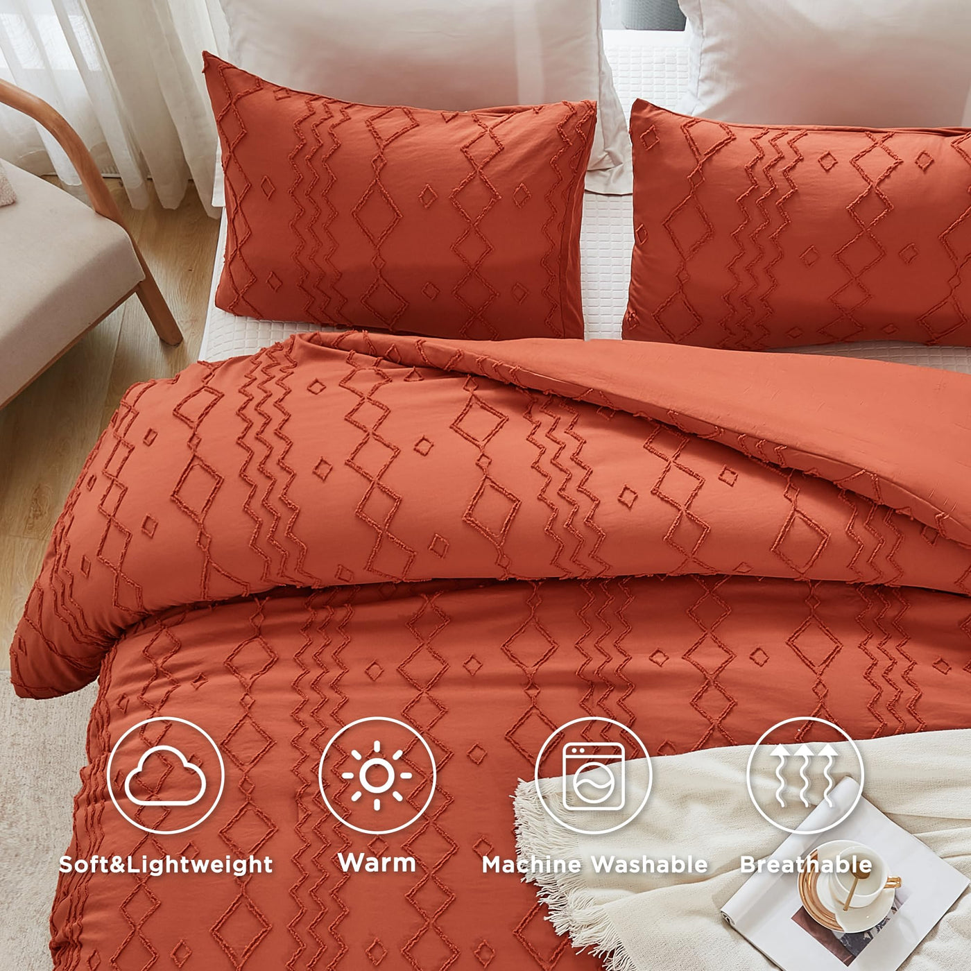 Andency Terracotta Tufted Comforter Set King(104X90Inch), 3 Pieces(1 Boho Comforter, 2 Pillowcases) Textured Farmhouse Comforter, Soft Microfiber Down Alternative Geometric Comforter Bedding Set