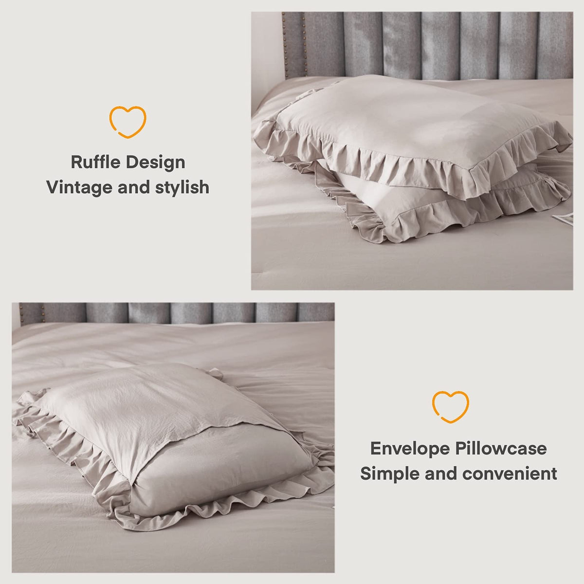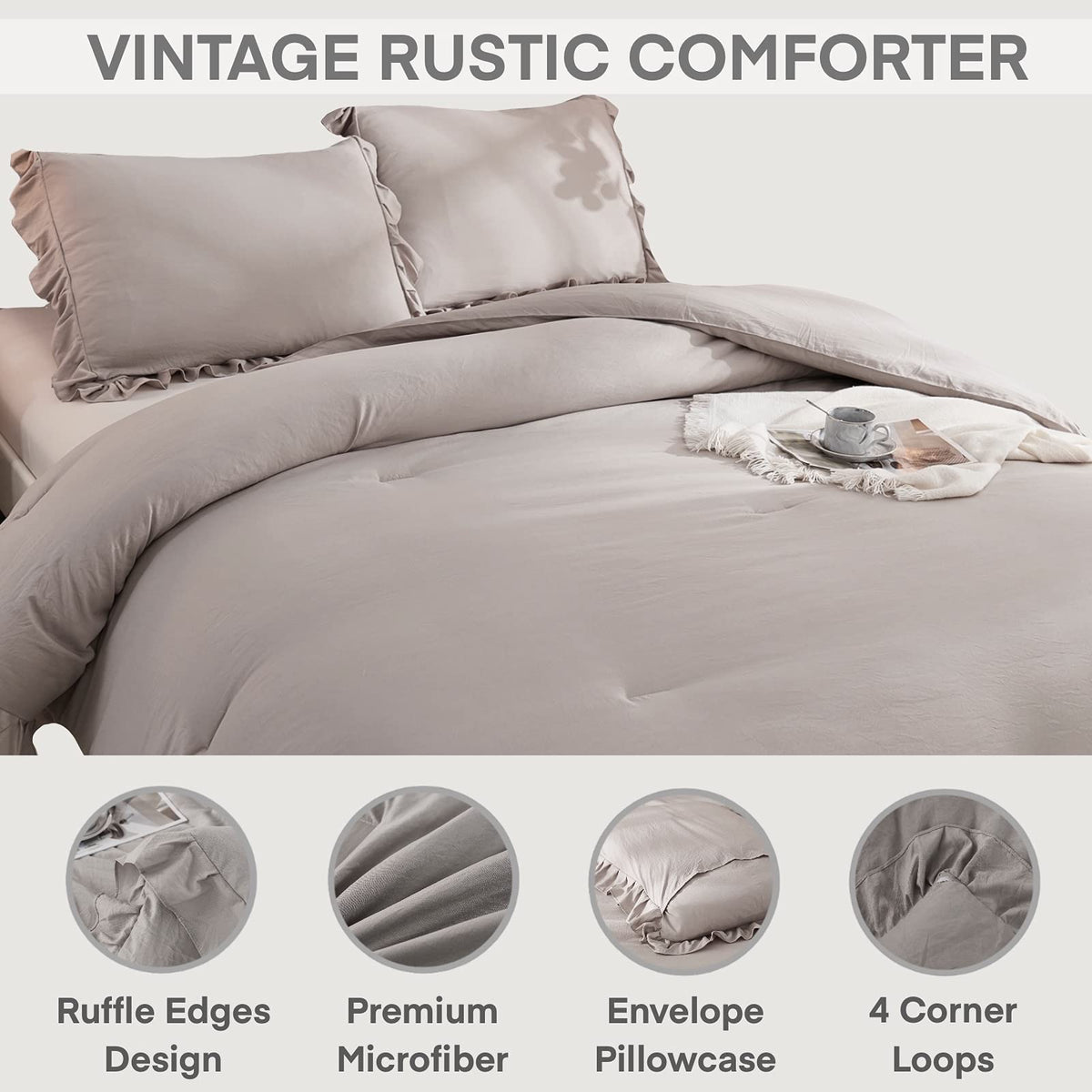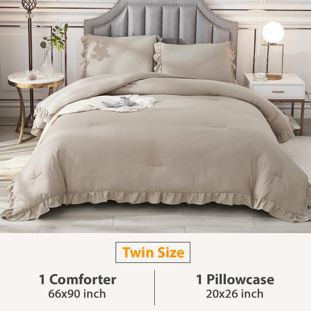 Andency Ruffle Comforter Set We are a professional manufacturer, aim to provide you comfortable and high-quality bedding sets. We have various styles of comforter sets: classic, unique, elegant style or farmhouse vintage style. You can definitely find one bedding set to meets your aesthetic taste. Why Choose Andency Ruffle Comforter Set? Ruffle Design: Our ruffle comforter creates a clean look, and the ruffle comforter is adopted a retro hem decorative pattern to show an elegant appearance and atmosphere. Soft Microfiber: Our stylish ruffled comforter is made of 100% premium quality microfiber, smooth and gentle to the touch. It will bring you a more breathable and lightweight feeling than a regular comforter. Exquisite Workmanship: Excellent stitching technology makes this shabby chic comforter durable, also a nice farmhouse room decor. Important is, the whole-piece polyfill prevents the filling from shifting, clumping. There is no concern about leakage or ripping. Great Gift: Andency chic ruffle comforter set will help you build an elegant house that twin of vintage farmhouse looking, the ruffle comforter sets are a good choice as a birthday gift or special holiday gift to your friends and family. Machine washable: Machine washable in the gentle cycle with cold water separately. Air dry or tumble dry on low heat. Please do not bleach. Since the comforter is vacuum packaged, to completely fluff up this comforter, we suggest you expose it to the sunlight for a few hours and tapped it for fluffy.