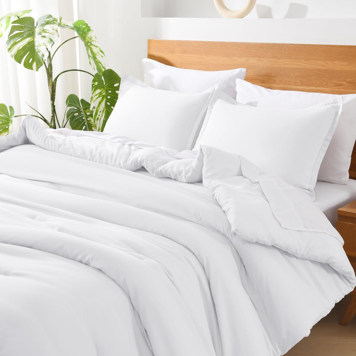 Andency White California King Comforter Set - 7 Pieces Bed In A Bag Cal King Bedding Comforter Sets, Summer Solid Soft Lightweight Comforter With Fitted Sheets, Flat Sheets, Pillowcases & Shams