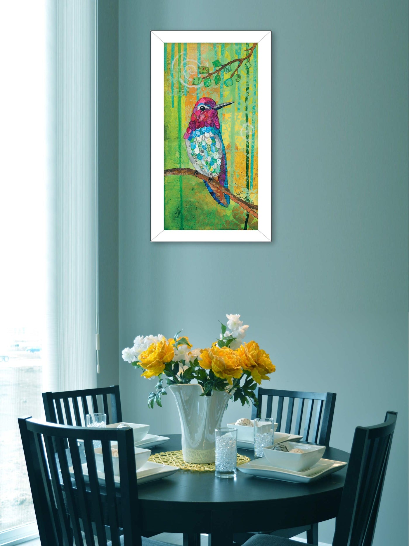 This annas hummingbird white framed print wall art will add a beautiful decorative accent to your decor. This bird inspired art will be a great addition to your space. This print is a visual artistic expression that allows you to decorate your space in style. Reproduced for you on paper, this hanging decorative accent will be a trendy and fashionable way to dress your walls. Hang on your wall to add some up date fashion and Utilize this opportunity to create a focal point in the room with this wonderful wall decor option. 14' H x 8' W x 1' D
