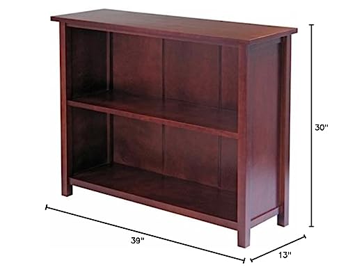 This shelf offers a great alternative to home décor, finished in an antique walnut stain, this piece features 2 large shelves as well as third tier for displaying your photographs.Turn this storage shelf into a multi purpose shelf by adding our wired baskets or foldable fabric baskets for a total different look.Shelf assembled dimension is 39"W x 13"D x 30"H.Spacing between each shelf is 12.20" with shelf surface of 34.25"W x 11.14"D.Shelf top surface is 39"W x 13"D.Made with combination of solid and composite wood in Walnut finish.Assembly Required. . Dimension: 38.98" W x 12.99" D x 30" H, Weight: 30.85