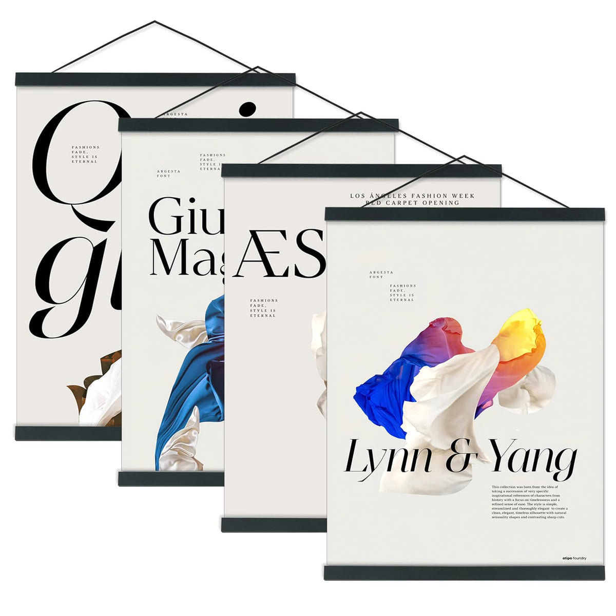 Q: What is included in the Artmag 4 Pack Magnetic Poster Hanger Frame?A: The Artmag 4 Pack includes four magnetic poster hangers, each measuring 15 inches, which allows you to display multiple posters or artwork pieces.