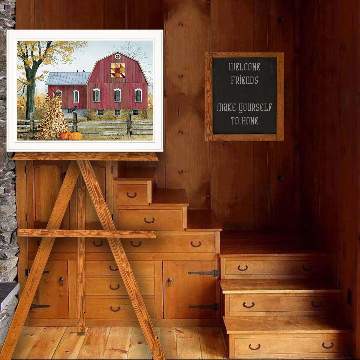 Bring some sizzle to your space with this eye-catching autumn leaf quilt block barn 1 white framed print wall art. This print is a visual artistic expression that allows you to decorate your space in style. Reproduced for you on paper, this hanging accent will be a trendy and fashionable way to dress your Adding this hanging wall art to make your room feel more finished and attractive. Utilize this opportunity to create a focal point in the room with the room in the room. This wonderful wall decor op. tion. 21' H x 27' W x 1' D