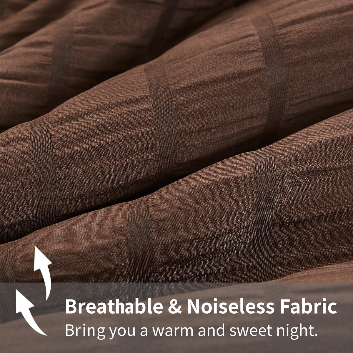 Chic Seersucker Design: Are you tired of smooth, plain comforter sets without any design? This delicate and beautiful seersucker texture is simple and fashionable, and you will fill in love with the pattern at first sight. | Comfortable and Soft: AveLom Brown comforter set is made of 100% washed microfiber. Extremely soft material with 300 GSM filling keeps you warm and cozy for all seasons. 40% more durable and breathable than ordinary materials. | Lightweight and Fluffy: The AveLom full size comforter will not put downward pressure on your body. You will totally melt in it and feel like sleeping on a cloud. The well-finished fabric material provides smooth and comfortable touching. | Easy Care and Pet Friendly: Machine washable in the gentle cycle with cold water separately. Air dry or tumble dry on low heat. Please do not bleach. Our lightweight bed comforter set doesn't attract your pet hair. Holding up to dog/cat paws and dog/cat hair brushes off easily. | Size & Measurement: AveLom seersucker comforter set twin size includes 1 Comforter (68x90 inches) and 1 Pillowcases (20x26 inches). The comforter set can be used as a duvet insert or as a stand-alone comforter.
