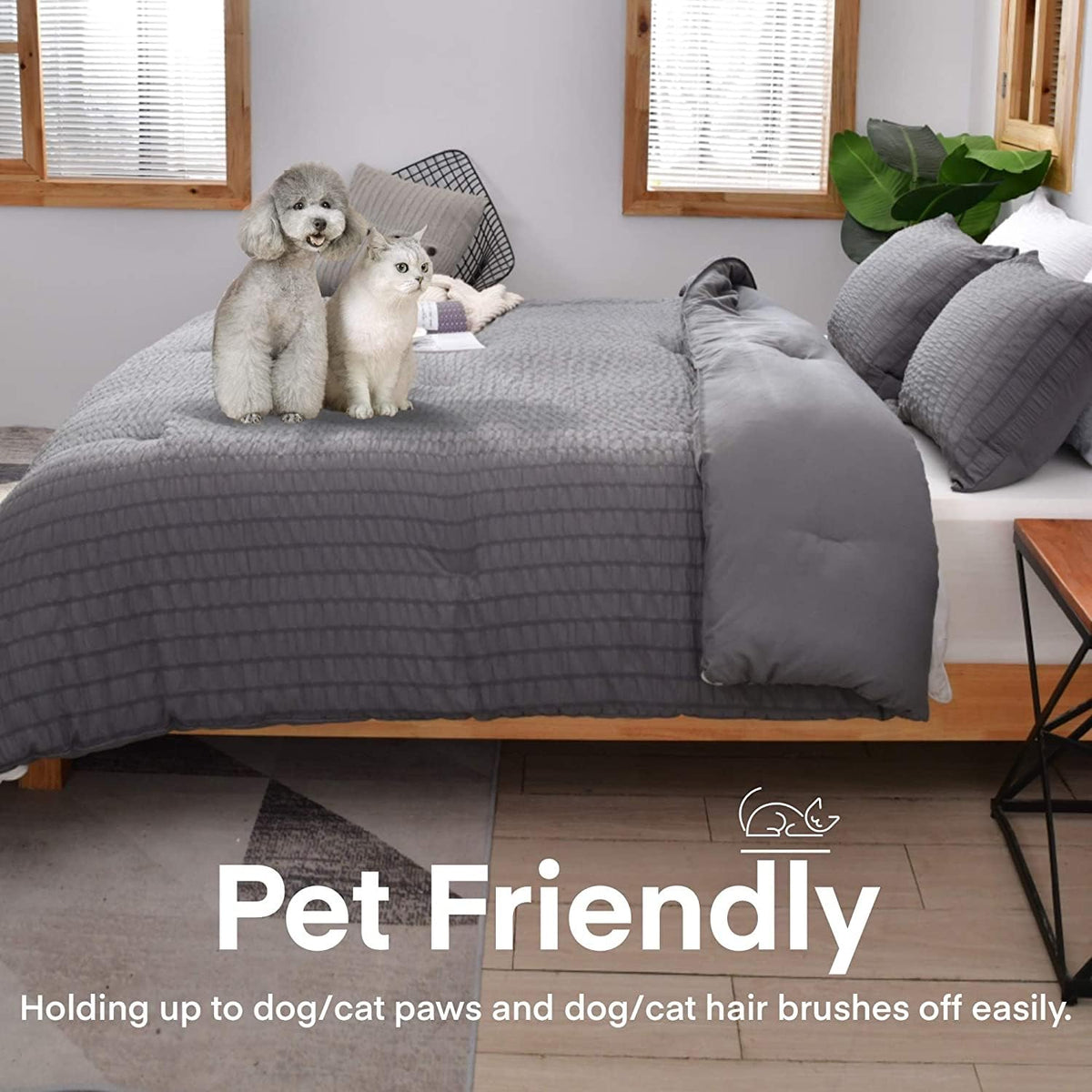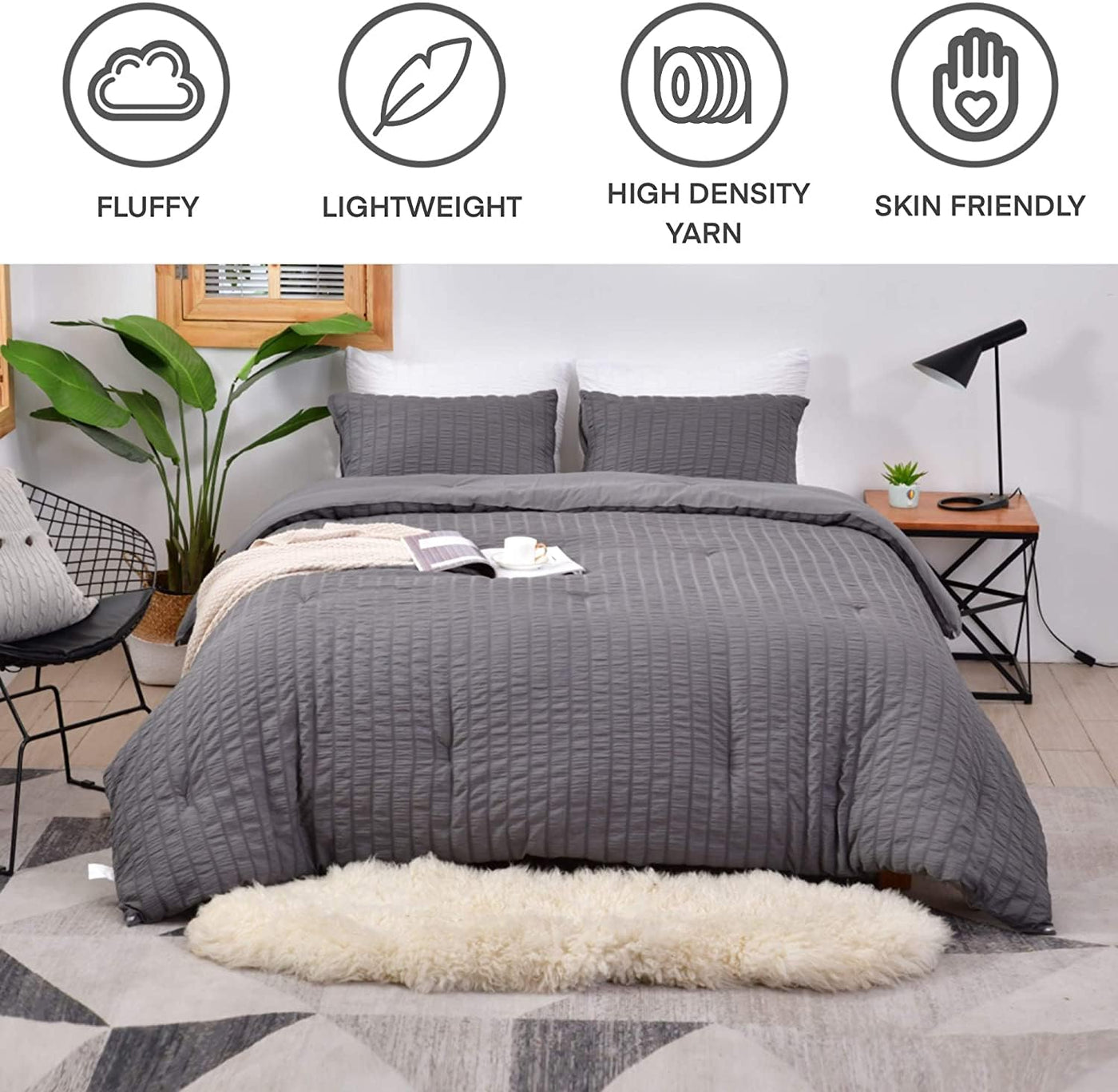 Chic Seersucker Design: Are you tired of smooth, plain comforter sets without any design? This delicate and beautiful seersucker texture is simple and fashionable, and you will fill in love with the pattern at first sight. | Comfortable and Soft: AveLom Dark Gray comforter set is made of 100% washed microfiber. Extremely soft material with 300 GSM filling keeps you warm and cozy for all seasons. 40% more durable and breathable than ordinary materials. | Lightweight and Fluffy: The AveLom full size comforter will not put downward pressure on your body. You will totally melt in it and feel like sleeping on a cloud. The well-finished fabric material provides smooth and comfortable touching. | Easy Care and Pet Friendly: Machine washable in the gentle cycle with cold water separately. Air dry or tumble dry on low heat. Please do not bleach. Our lightweight bed comforter set doesn't attract your pet hair. Holding up to dog/cat paws and dog/cat hair brushes off easily. | Size & Measurement: AveLom seersucker comforter set california king size includes 1 Comforter (104x96 inches) and 2 Pillowcases (20x36 inches). The comforter set can be used as a duvet insert or as a stand-alone comforter.