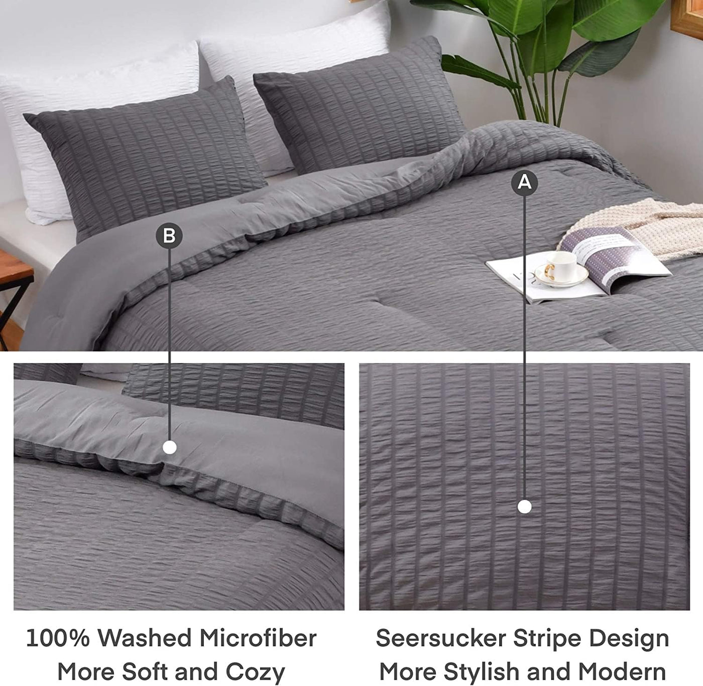 Avelom Dark Gray Seersucker California King Comforter Set (104X96 Inches), 3 Pieces-100% Soft Washed Microfiber Lightweight Comforter With 2 Pillowcases, All Season Down Alternative Bedding Set