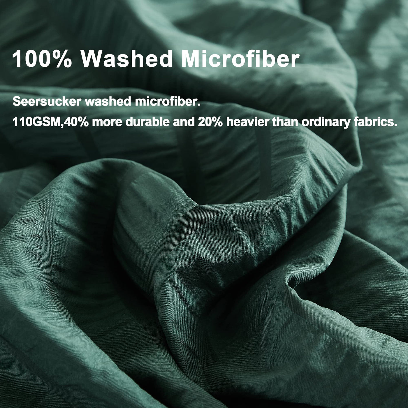 Avelom Dark Green Seersucker Duvet Cover Set King Size (104 X 90 Inches), 3 Pieces (1 Duvet Cover + 2 Pillow Cases), Ultra Soft Washed Microfiber, Textured Duvet Cover With Zipper Closure, Corner Ties