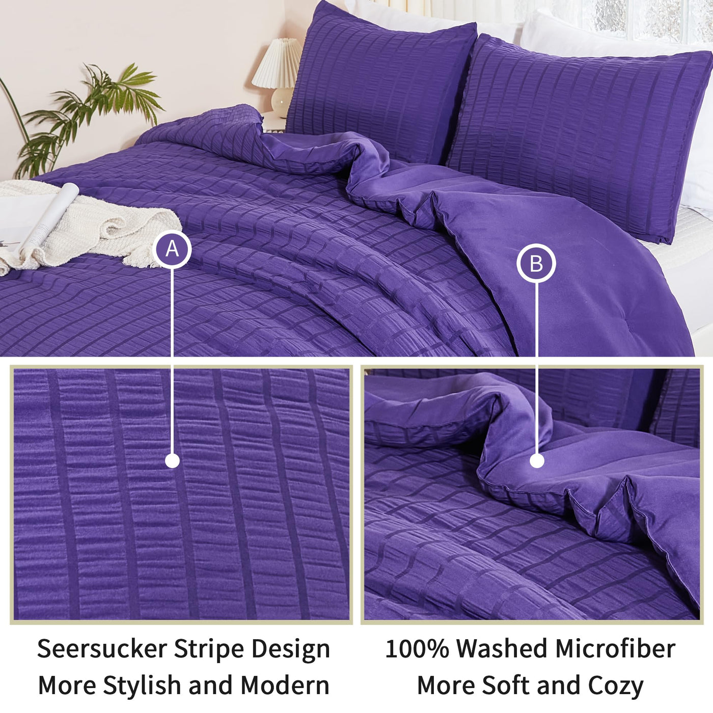 Avelom Dark Purple Seersucker California King Comforter Set (104X96 Inches), 3 Pieces-100% Soft Washed Microfiber Lightweight Comforter With 2 Pillowcases, All Season Down Alternative Bedding Set
