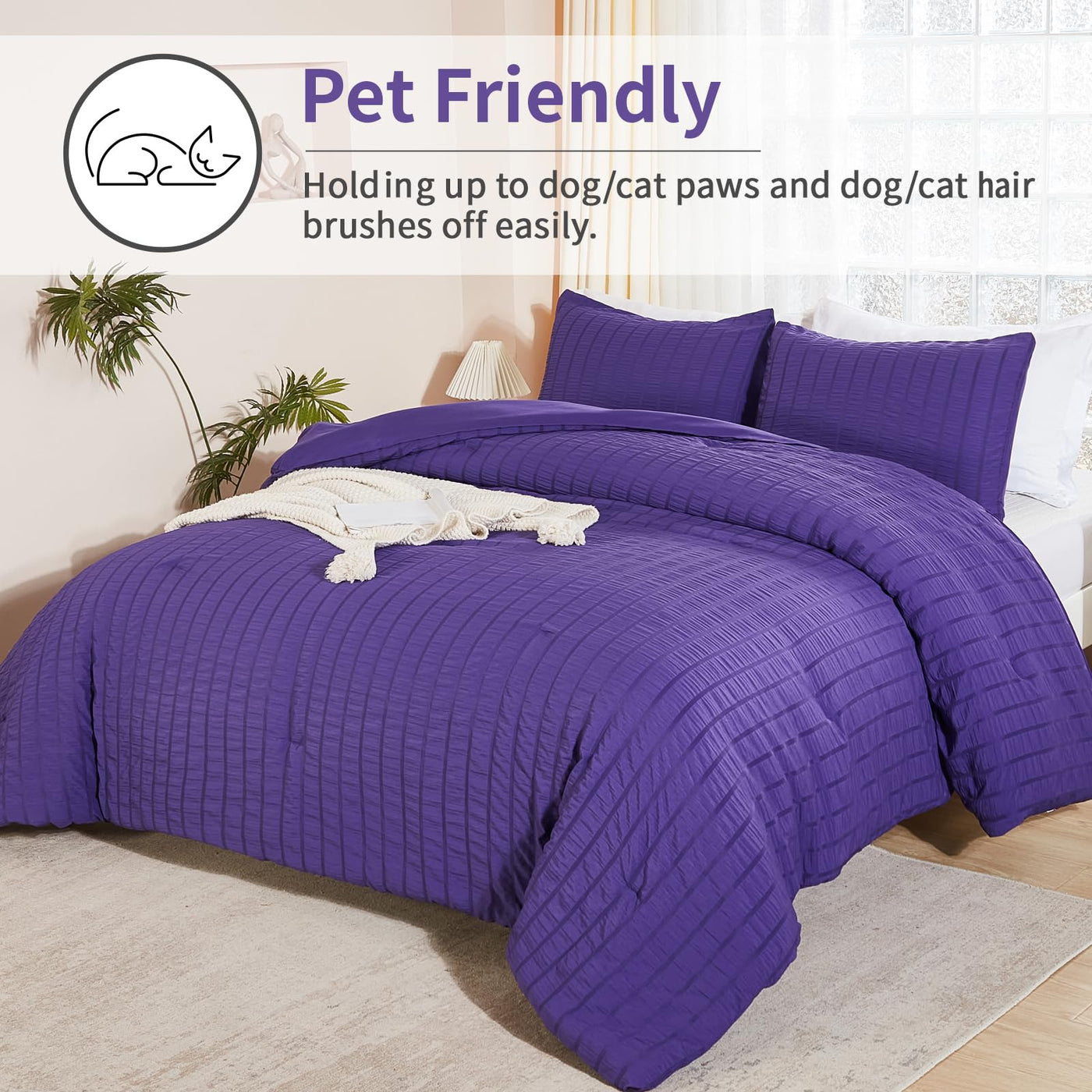Avelom Dark Purple Seersucker Full Comforter Set (80X90 Inches), 3 Pieces-Soft Washed Microfiber Lightweight Comforter With 2 Pillowcases, All Season Down Alternative Comforter Set For Bedding