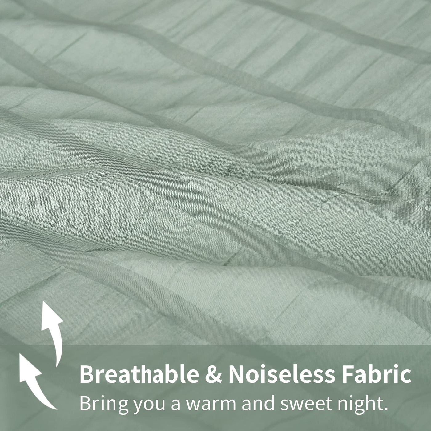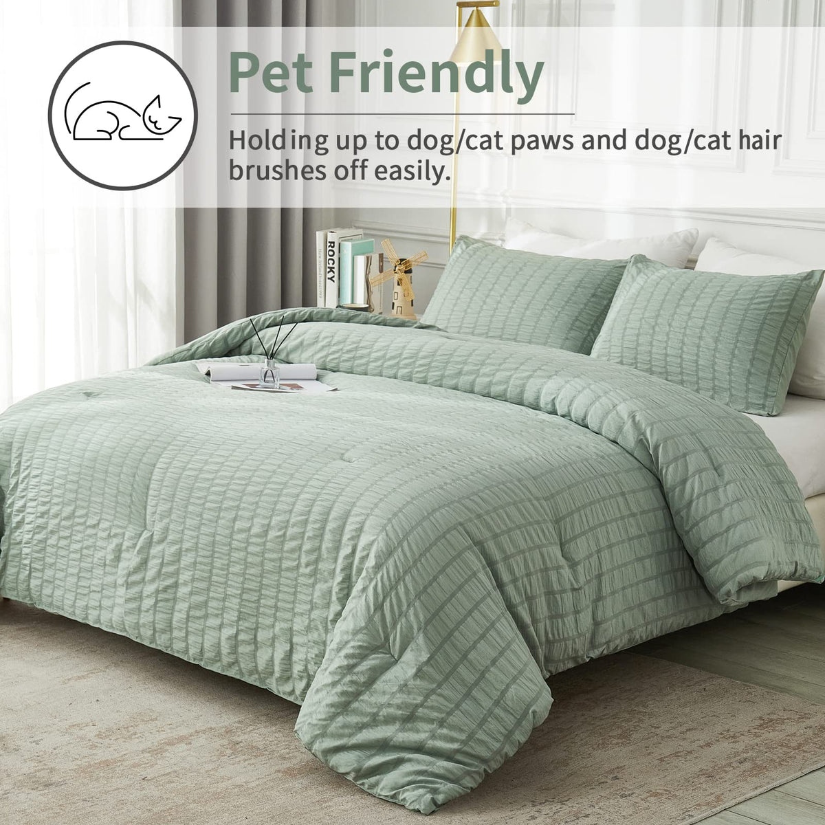 Chic Seersucker Design: Are you tired of smooth, plain comforter sets without any design? This delicate and beautiful seersucker texture is simple and fashionable, and you will fill in love with the pattern at first sight. | Comfortable and Soft: AveLom Sage Green comforter set is made of 100% washed microfiber. Extremely soft material with 300 GSM filling keeps you warm and cozy for all seasons. 40% more durable and breathable than ordinary materials. | Lightweight and Fluffy: The AveLom full size comforter will not put downward pressure on your body. You will totally melt in it and feel like sleeping on a cloud. The well-finished fabric material provides smooth and comfortable touching. | Easy Care and Pet Friendly: Machine washable in the gentle cycle with cold water separately. Air dry or tumble dry on low heat. Please do not bleach. Our lightweight bed comforter set doesn't attract your pet hair. Holding up to dog/cat paws and dog/cat hair brushes off easily. | Size & Measurement: AveLom seersucker comforter set twin size includes 1 Comforter (68x90 inches) and 1 Pillowcase (20x26 inches). The comforter set can be used as a duvet insert or as a stand-alone comforter.