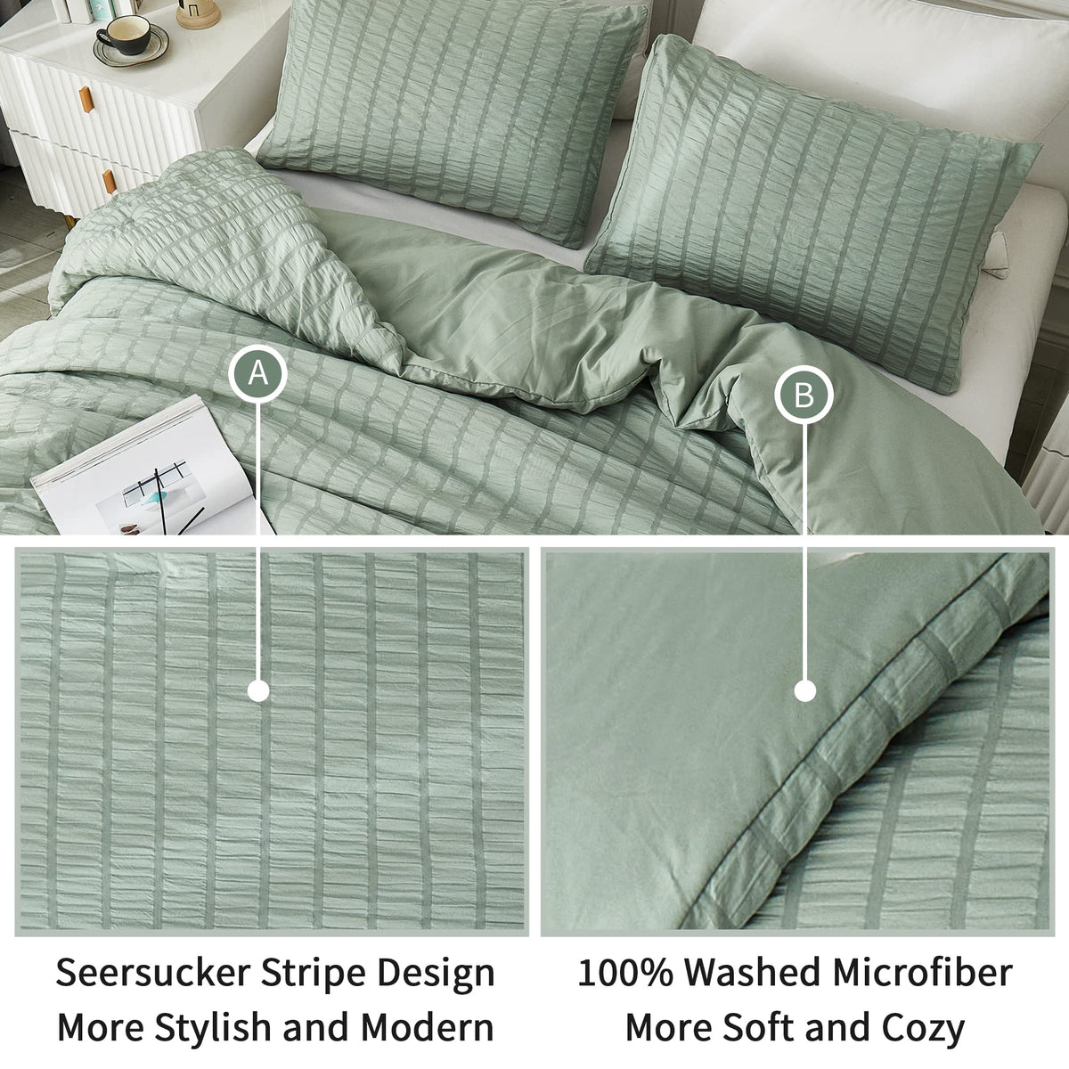 Avelom Sage Green Seersucker Twin/Twin Xl Comforter Set (68X90 Inches), 2 Pieces-100% Soft Microfiber Lightweight Comforter With 1 Pillowcase, All Season Down Alternative Comforter Set For Bedding