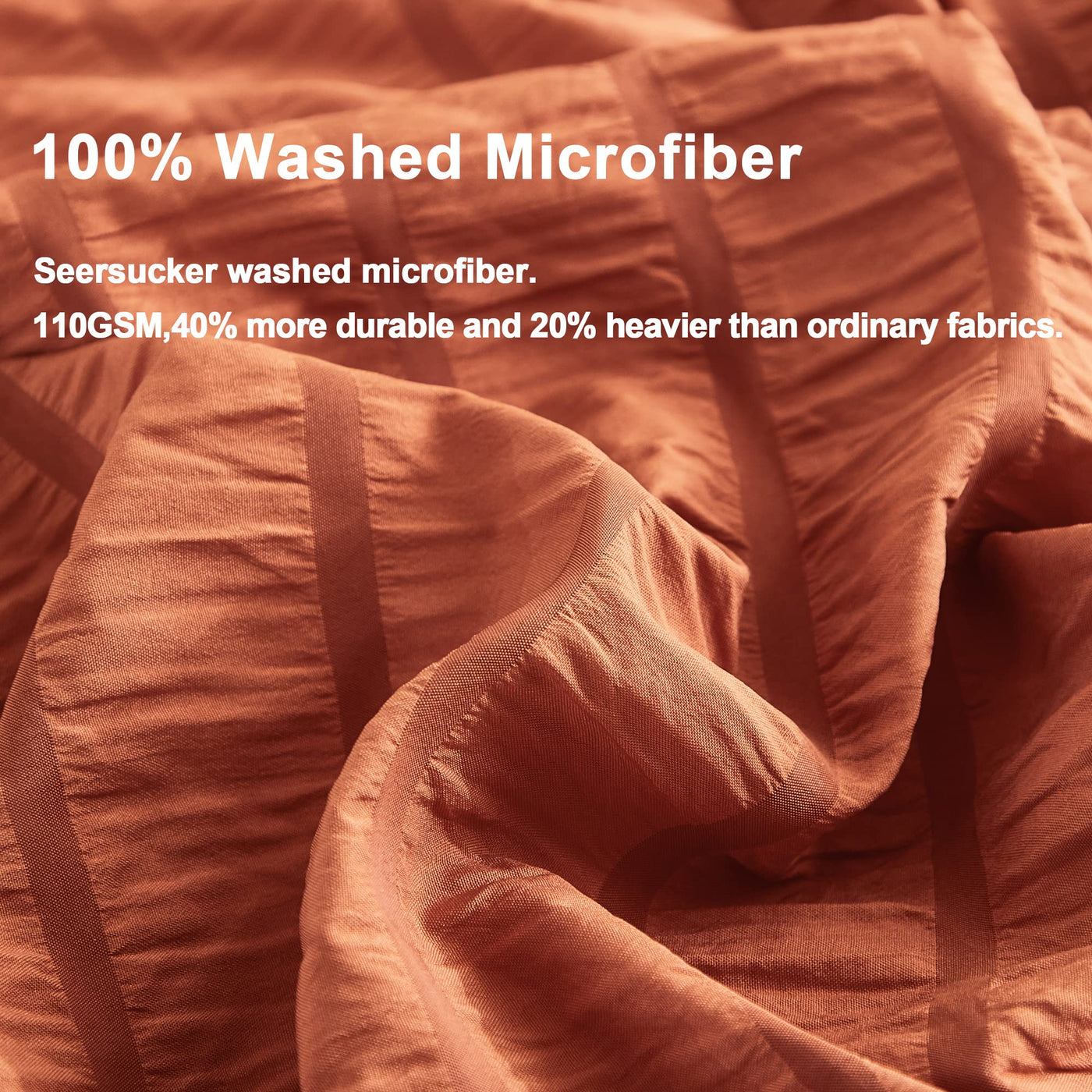 Avelom Terracotta Seersucker Duvet Cover Set King Size (104 X 90 Inches), 3 Pieces (1 Duvet Cover + 2 Pillow Cases), Ultra Soft Washed Microfiber, Textured Duvet Cover With Zipper Closure, Corner Ties