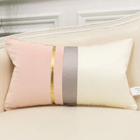 Avigers 12 X 20 Inches Pink White Gold Leather Striped Patchwork Velvet Cushion Case Luxury Modern Throw Pillow Cover Decorative