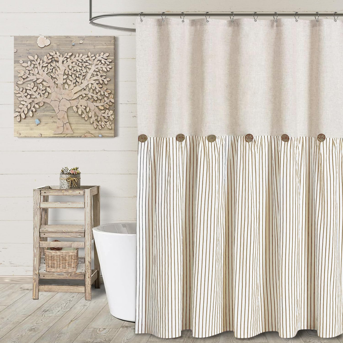 Awellife Linen Button Farmhouse Black Shower Curtain,Linen And Cotton Woven Fabric,Country Style,72' L X 72' W