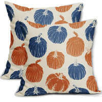 Aytipun Blue Orange Pumpkin Fall Pillow Covers 18X18 Set Of 2 Autumn Harvest Print Thanksgiving Decorative Throw Pillows Outdoor