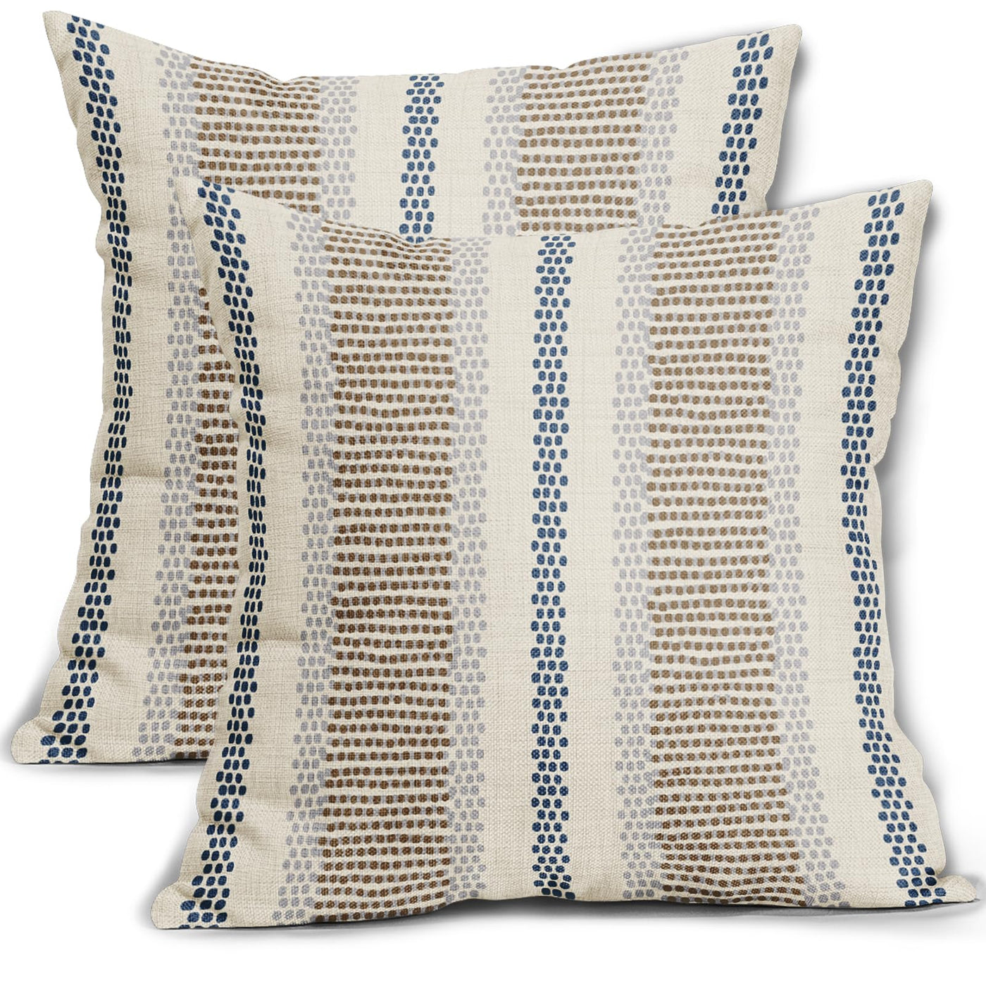 Aytipun Brown Blue Pillow Covers 18X18 Set Of 2 Gray Grey Dot Print Striped Decorative Outdoor Pillowcases Boho Rustic Farmhouse