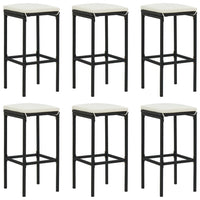 Dieses Set mit 6 Barhockern hat ein einzigartiges Design und ist perfekt für Restaurants, Bars und Ihr Wohnzimmer oder Esszimmer zu Hause. Der Barhocker hat eine starke Stahlkonstruktion und ist daher stabil. Dank des leichten und witterungsbeständigen PE-Rattans ist dieser Tresenhocker langlebig und leicht zu bewegen. Das integrierte Sitzkissen und die Fußstütze sorgen für zusätzlichen Komfort für den Hocker. Der pflegeleichte Polyester-Kissenbezug mit verstecktem Reißverschluss kann entfernt und gewaschen werden. Farbe: Schwarz. Farbe der Kissen: Cremeweiß. Material: PE-Rattan, Stahl Material Kissen: Stoff (100% Polyester) Abmaße: 38 x 38 x 76 cm (BxTxH) Maße des Kissens: 38 x 38 x 3 cm (L x B x T) Montage erforderlich: Ja. Lieferumfang: 6 x Barhocker. 6 x Sitzkissen.