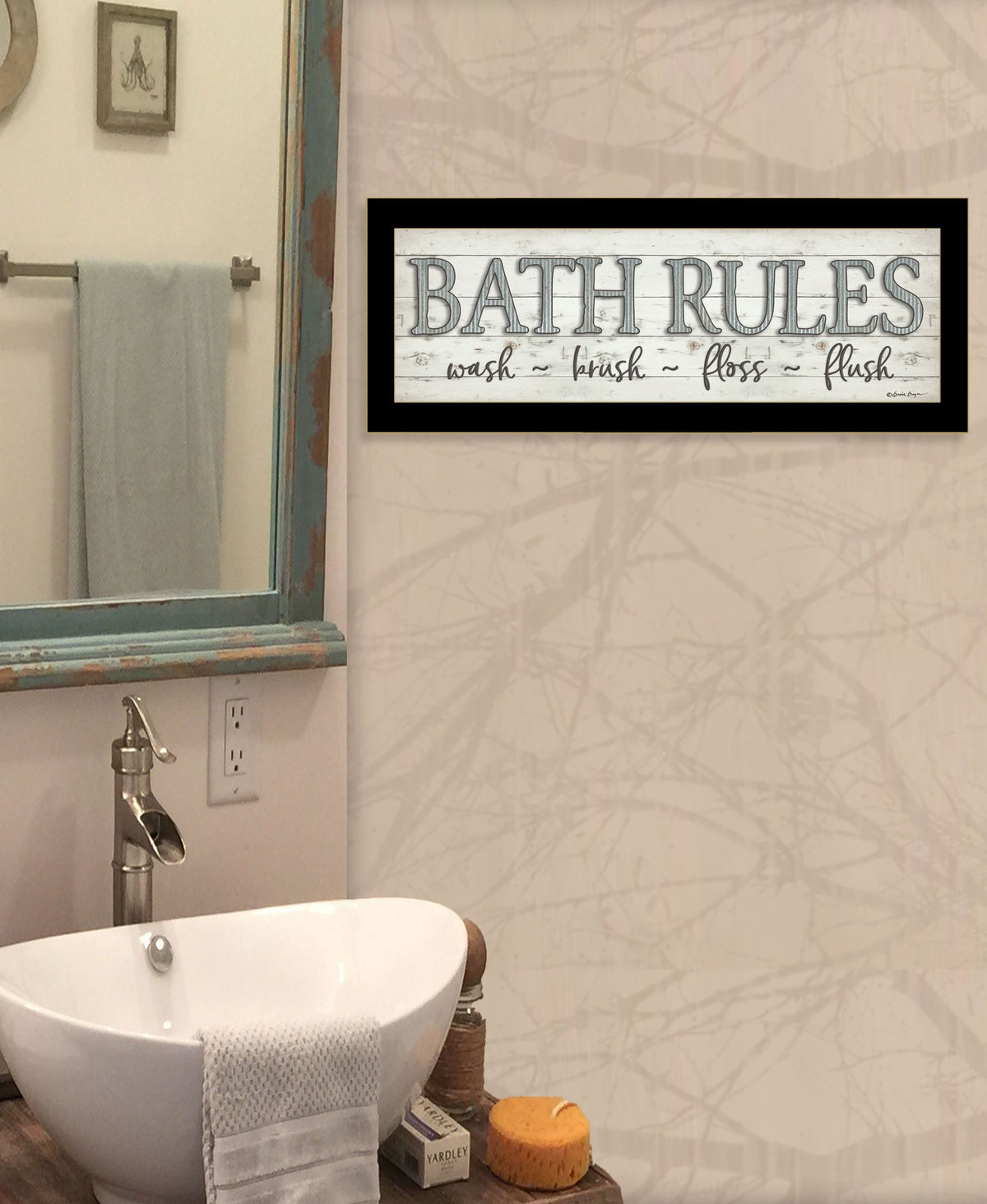 Bring some sizzle to your space with this eye-catching bath rules 3 black framed print wall art. This print is a visual artistic expression that allows you to decorate your space in Reproduced for you on paper, this hanging decorative accent will be a trendy and fashionable way to dress your walls. Adding this hanging wall art to your space to make your room feel more and attractive. Utilize this opportunity to create a focal point in the room with this wonderful wall with this wonderful wall decor option. 8' H x 20' W x 1' D