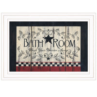 Bring some sizzle to your space with this eye-catching bathroom 2 white framed print wall art. This print is a visual artistic expression that allows you to decorate your space in the black and white photography style. Makes this photographic art appealing and gives it visual interest. Reproduced for you on paper, this hanging accent will be a trendy and fashionable way to dress your walls. Adding this hanging wall art to make your room feel more attractive. antly liven up your space with this art that brings color and dimension to your walls. 11' H x 15' W x 1' D