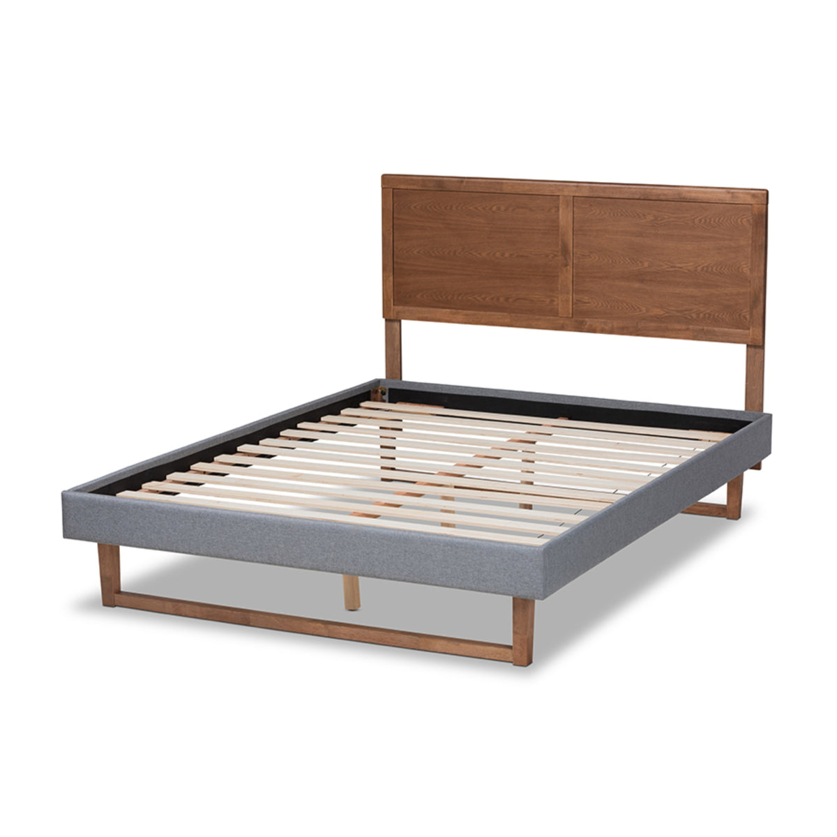 Baxton Studio Allegra Mid-Century Modern Dark Grey Fabric Upholstered and Ash Walnut Brown Finished Wood King Size Platform Bed