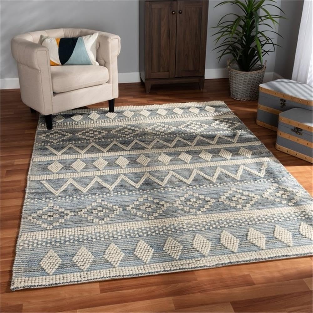 Baxton Studio Callum Ivory and Blue Handwoven Wool Blend Area Rug