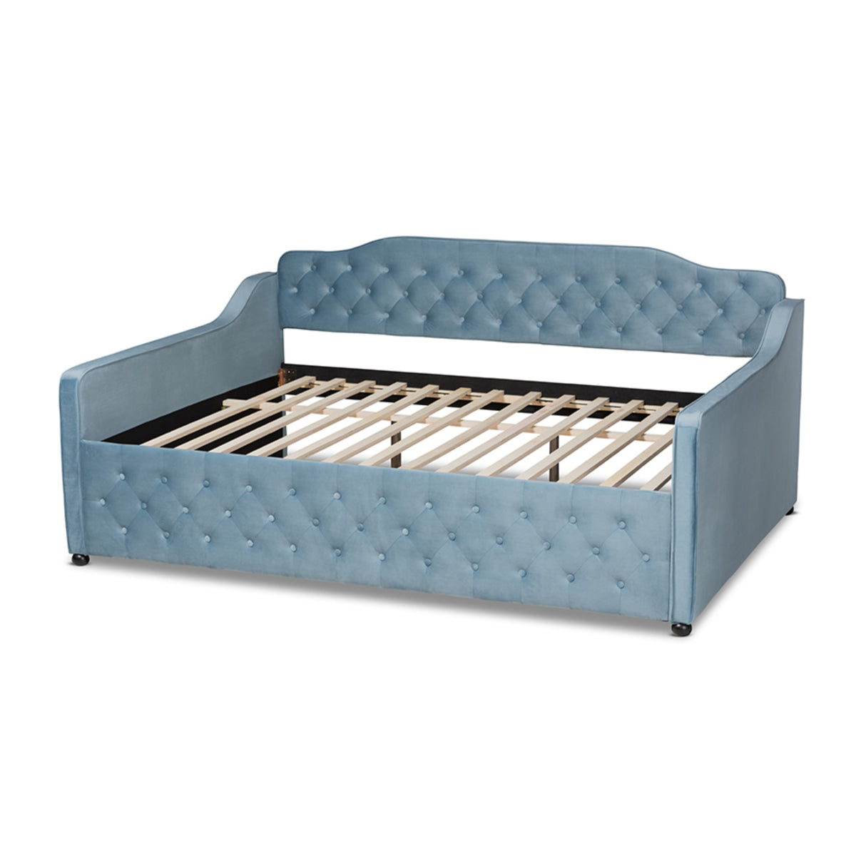 Baxton Studio Freda Transitional and Contemporary Light Blue Velvet Fabric Upholstered and Button Tufted Full Size Daybed