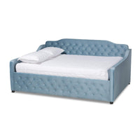 Baxton Studio Freda Transitional and Contemporary Light Blue Velvet Fabric Upholstered and Button Tufted Queen Size Daybed