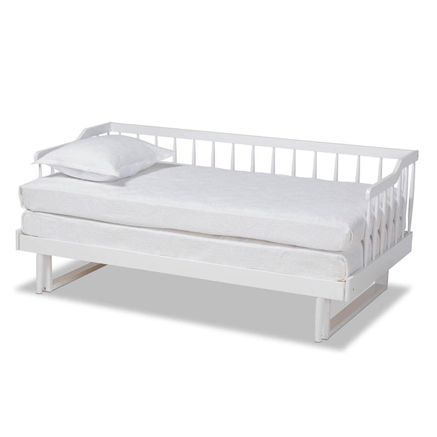 Baxton Studio Muriel Modern and Transitional White Finished Wood Expandable Twin Size to King Size Spindle Daybed