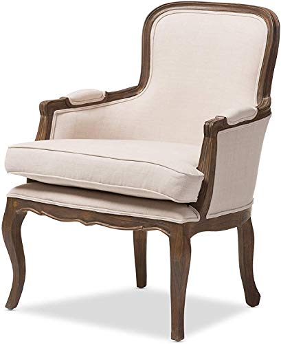 Who would expect such attention to detail in discount furniture? our napoleon traditional French accent chair defies expectations with classic contouring, careful color coordination and durable construction. The napoleons cedar frame and distressed brown-ash finish recall the classics of yesteryearwithout the collectible price tag. Utmost comfort comes courtesy of cotton upholstery. 36'H x 25.2'w X 22.6'd, Seat 20.5'h X 22.75'w X 19.5'd.
