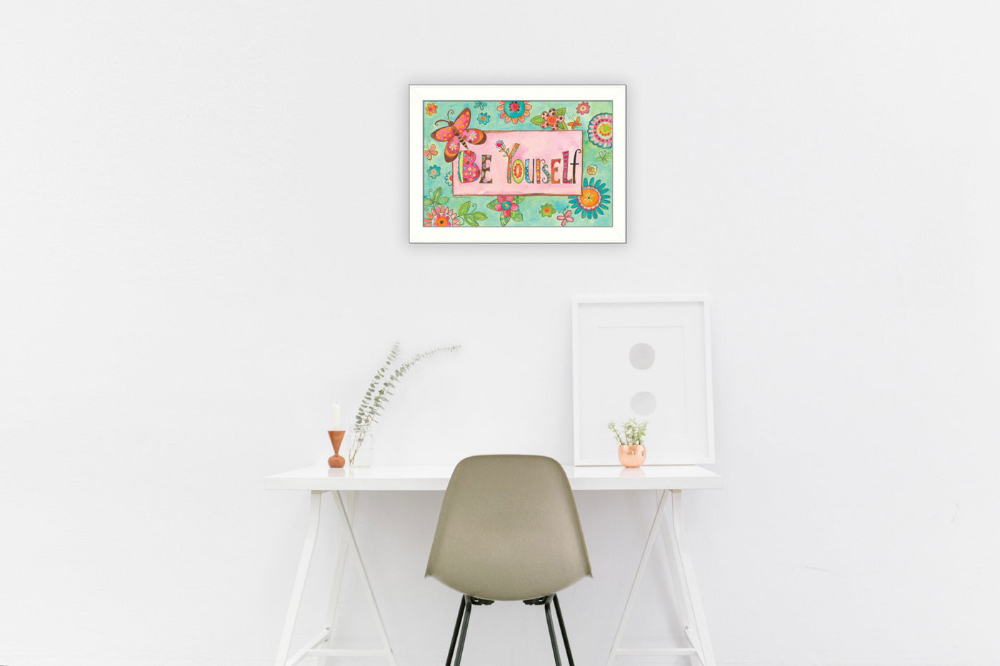 Add an air of fashion to your room and rejuvenate the space with this be yourself pink motivational white framed print wall art. This print is a visual artistic expression that allows you to decorate your space in style. Reproduced for you on paper, this hanging accent will be a trendy and fashionable way to dress your walls. Adding this hanging wall art to make your feel more finished and attractive. Utilize this opportunity to create a focal point in the room with this wonderful wall decor option. 20' H x 14' W x 1' D