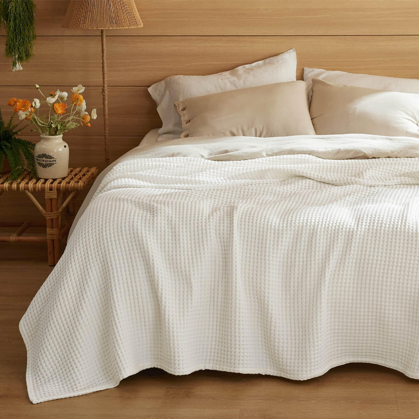 Bedsure 100% Cotton Blankets For Bed - Waffle Weave Blankets King Size, Soft Lightweight Woven Blankets For Summer, Ivory, 108X90 Inches