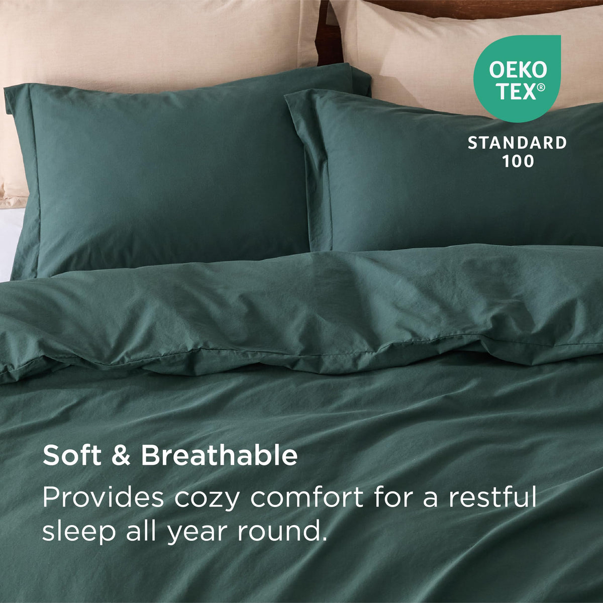 Bedsure 100% Washed Cotton Duvet Cover King Size - Forest Green Minimalist Cotton Duvet Cover Linen Like - Gentlesoft™ Plain Simple Bedding Set With 2 Pillow Shams (Forest Green, King, 104'X90')
