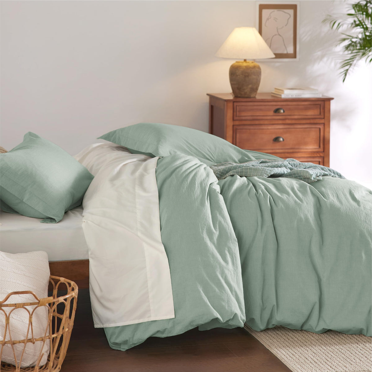 Bedsure 100% Washed Cotton Duvet Cover King Size - Sage Green Minimalist Cotton Duvet Cover Linen Like - 3 Pieces Gentlesoft™ Plain Simple Bedding Set With 2 Pillow Shams (Sage Green, King, 104'X90')