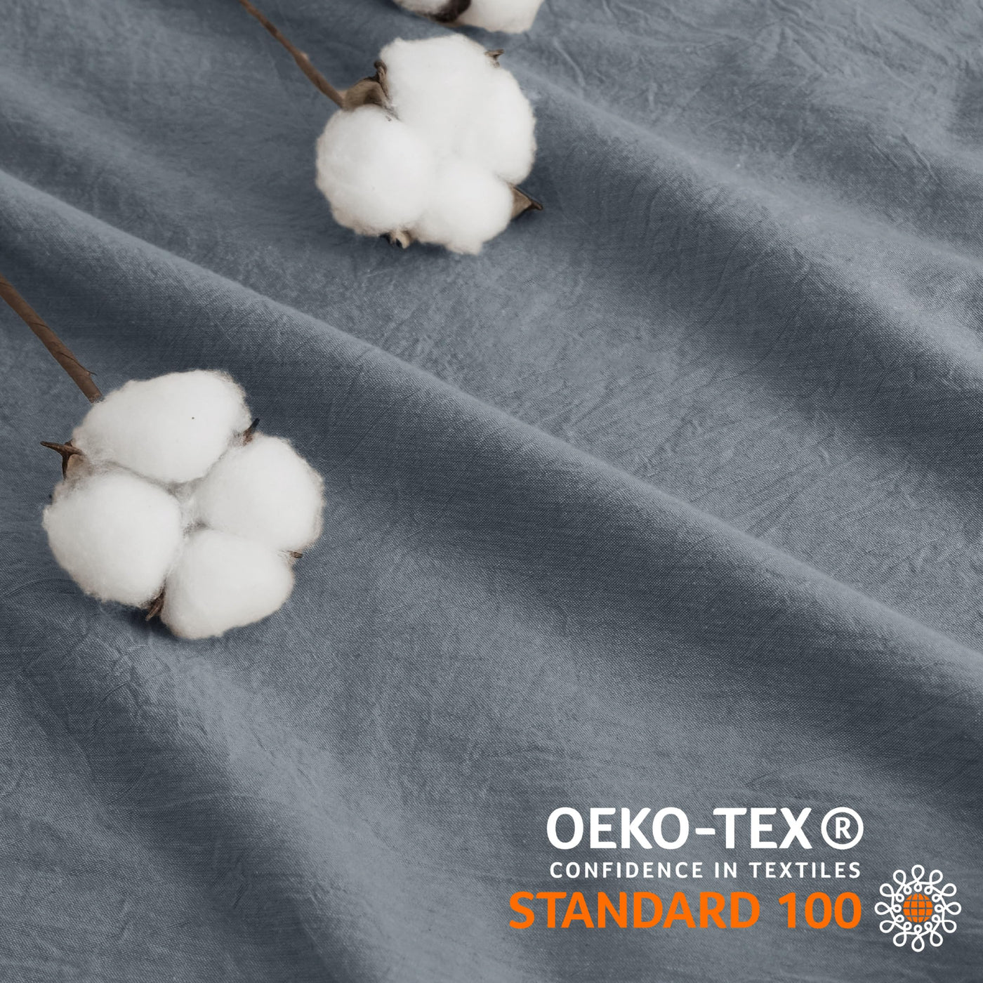 Bedsure 100% Washed Cotton Duvet Cover Queen - Grey Blue Minimalist Cotton Duvet Cover Set Linen Like - 3 Pieces Plain Simple Cotton Duvet Cover Set With 2 Pillow Shams (Grayish Blue, Queen, 90'X90')