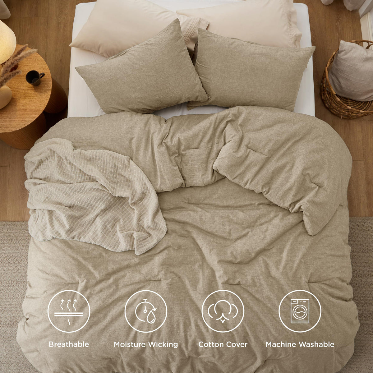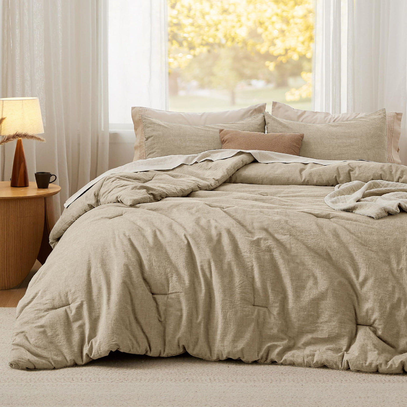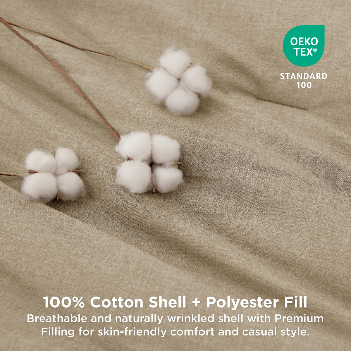 Bedsure Comforter Set Queen Size - Cotton Fabric With Microfiber Inner Fill, Khaki Soft Bed Set For All Seasons, 3 Pieces, 1 Comforter (90' X 90') And 2 Pillow Cases (20' X 26')