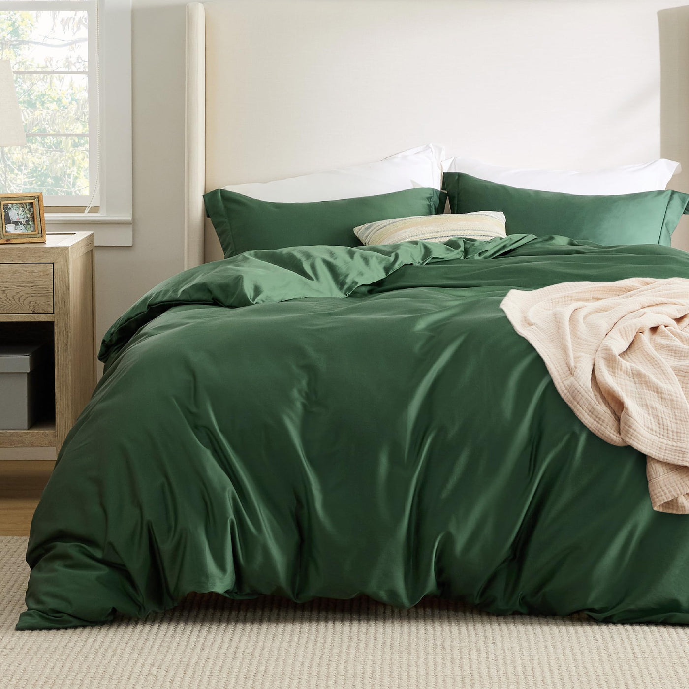 Bedsure Cooling Duvet Cover King - Moisture Wicking And Silky Eucalyptus Lyocell Cotton Hybrid Comforter Cover Set For Hot Sleeper - Buttery Soft And Breathable, Cooling Bedding Set, Forest Green