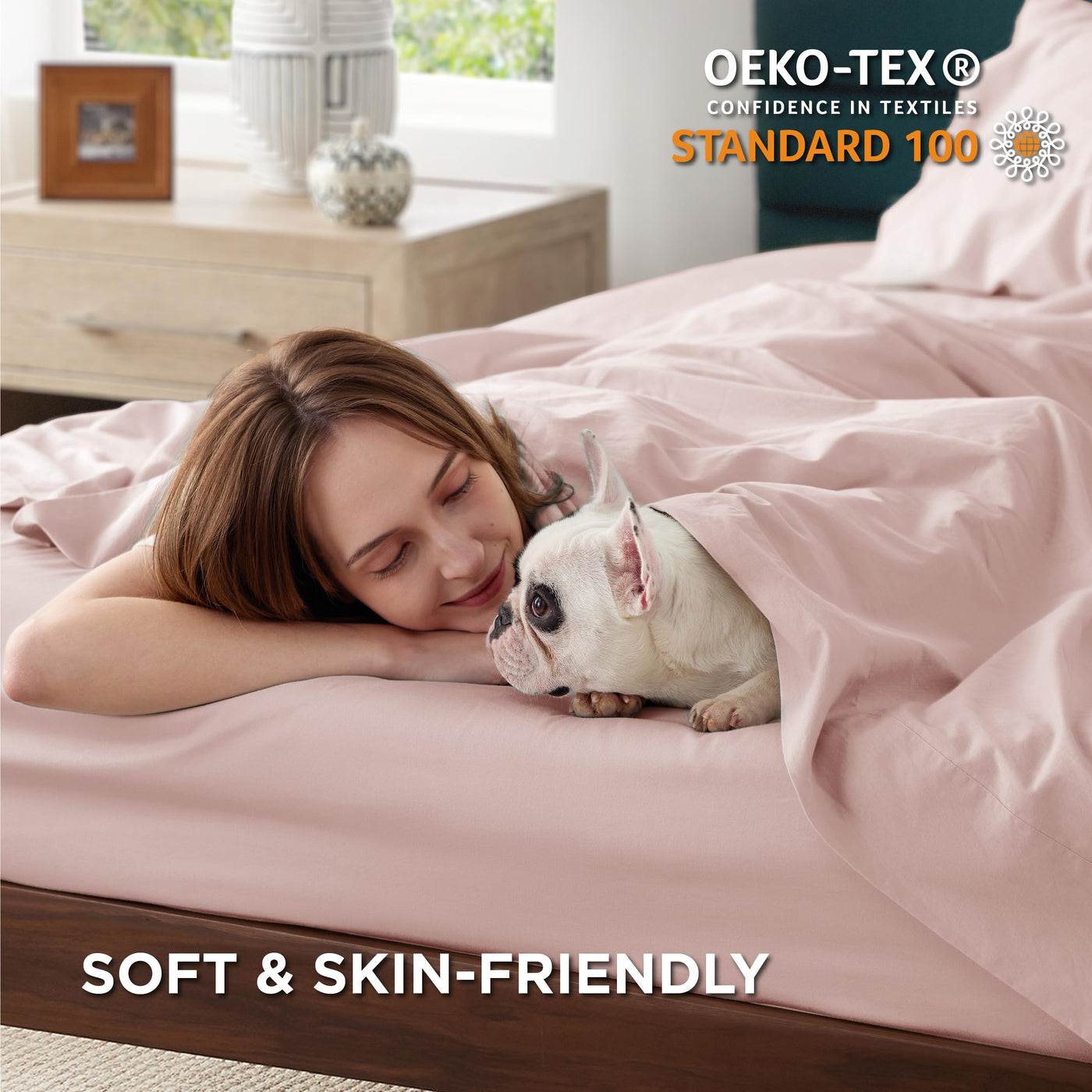 Bedsure Cotton Percale Twin Sheets Set - 100% Cotton Bed Set For Twin Size Bed, Breathable & Crirsp Soft Sheets, Deep Pocket Up To 16 Inches, Bedding Bedsheets & Pillowcases, Pink