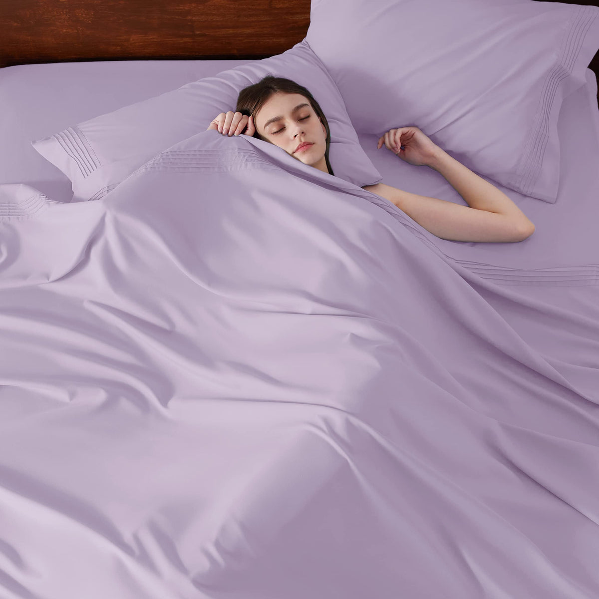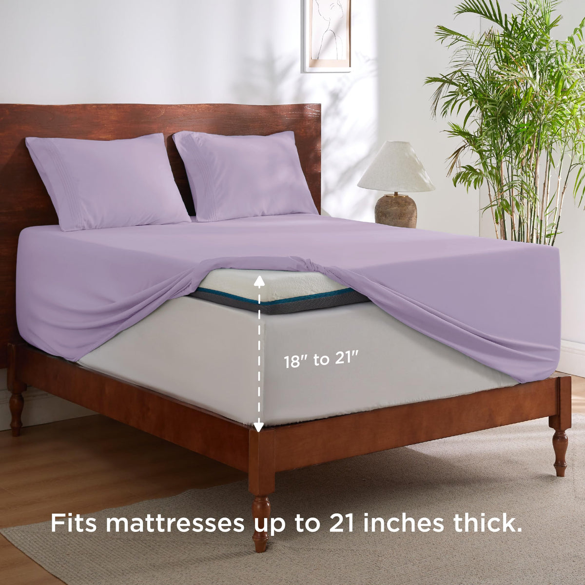 Bedsure Deep Pocket Full Size Sheets Set - Fits Mattresses Up To 21' Thick, 4 Piece Air Mattress Sheets With Deep Pocket, Moisture Wicking Soft Cooling Bedding Sheets & Pillowcases, Light Purple