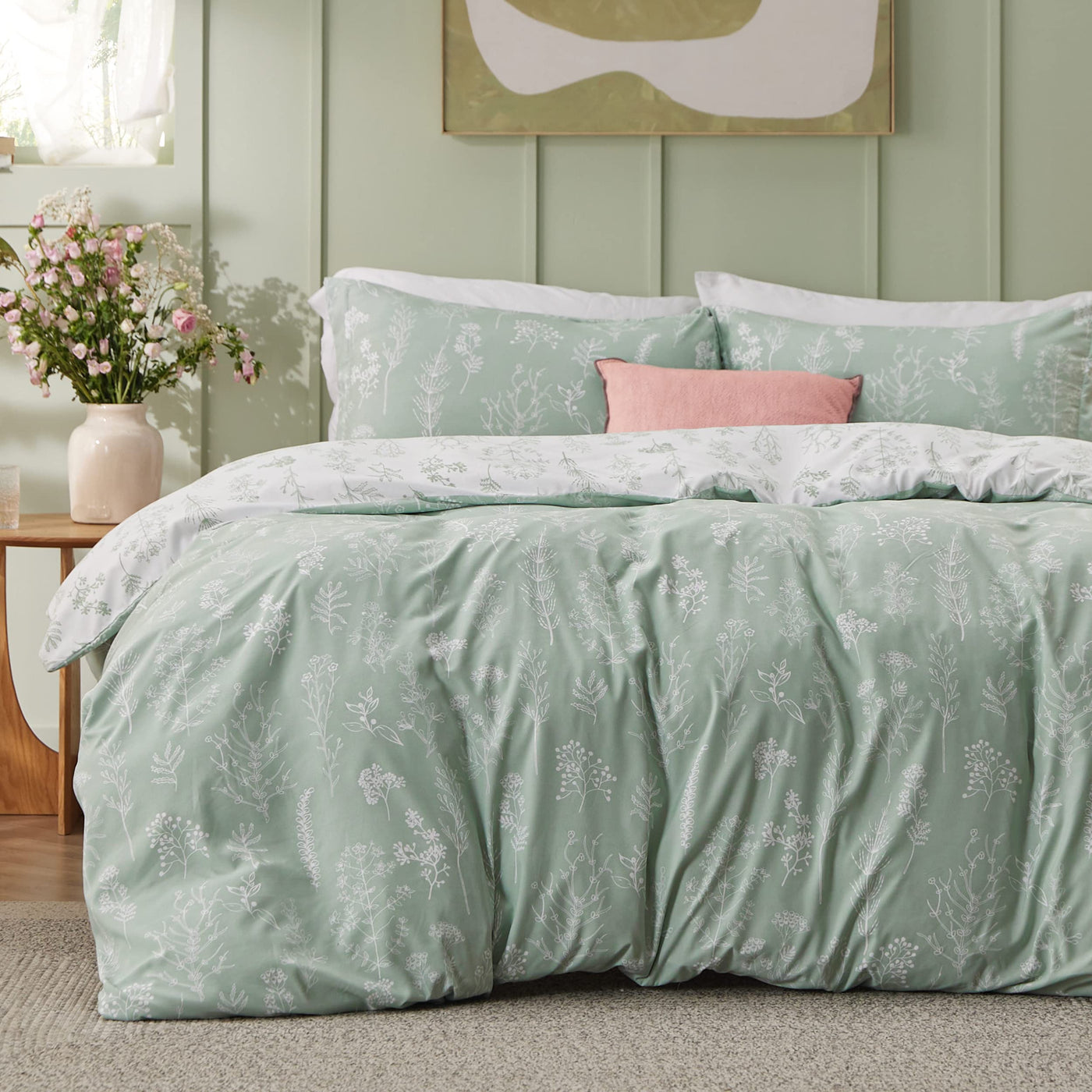 Bedsure Duvet Cover King Size - Reversible Floral Duvet Cover Set With Zipper Closure, Green Bedding Set, 3 Pieces, 1 Spring Duv