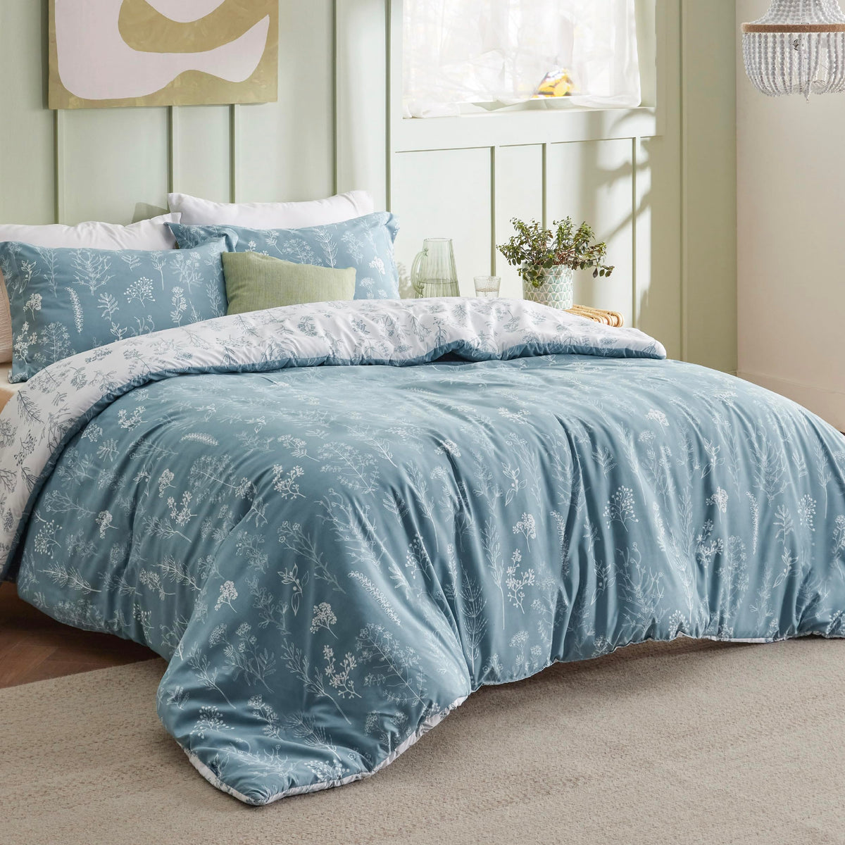 Bedsure Duvet Cover King Size - Reversible Floral Duvet Cover Set With Zipper Closure, Mineral Blue Bedding Comforter Cover, 3 Pieces, 1 Duvet Cover 104'X90' And 2 Pillow Shams 20'X36'
