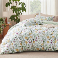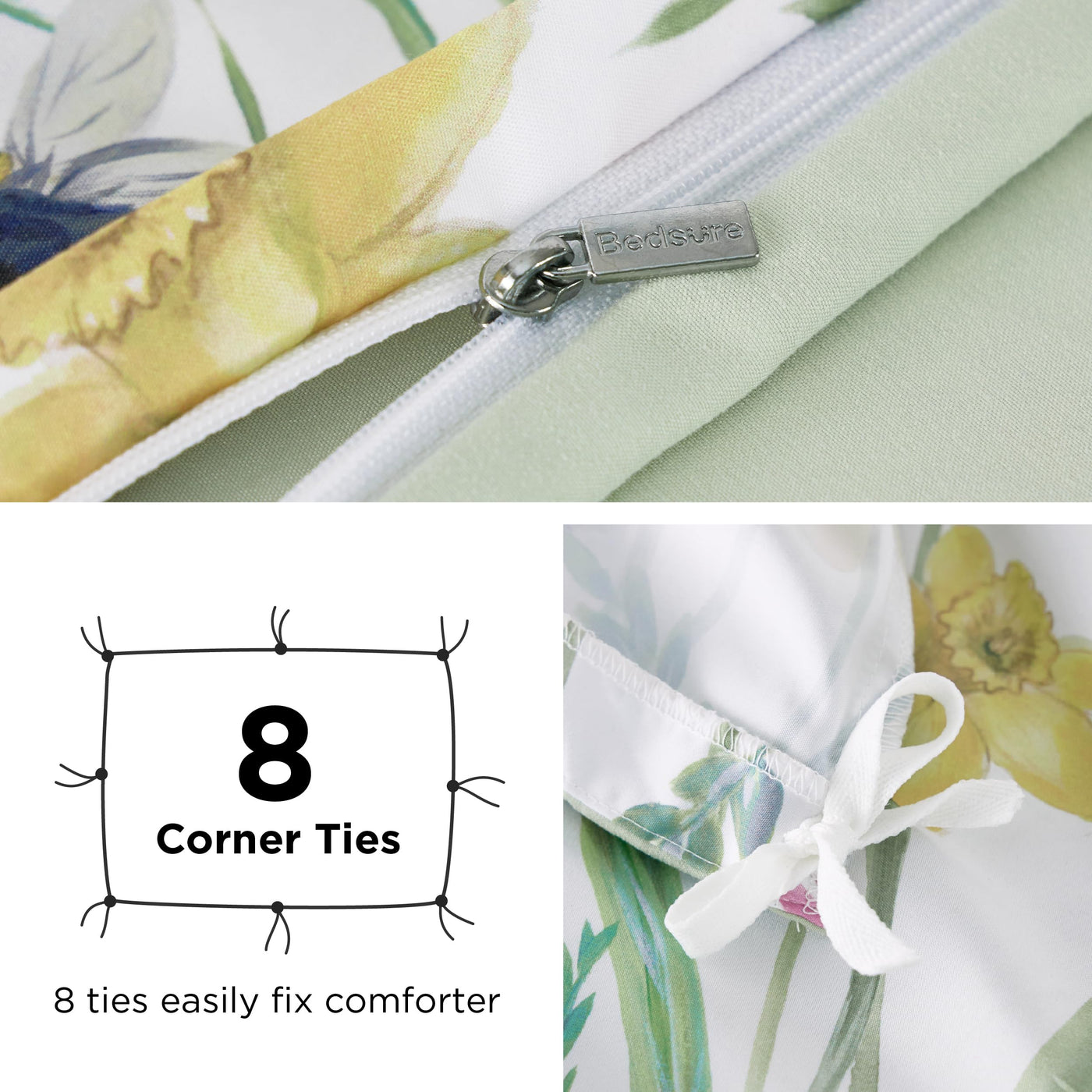 Bedsure Duvet Cover King Size - Reversible Cute Floral Pattern Duvet Cover Set with Zipper Closure, Yellow/Green Bedding Comforter Cover, 3 Pieces, 1 Duvet Cover 104'x90' and 2 Pillow Shams 20'x36' Modern Design: Featuring a floral graphic, this spring floral duvet cover set effortlessly adds a touch of spring vibe to your sleeping space. Premium Quality: This durable and breathable Bedsure duvet cover is Standard 100 by OEKO-TEX certified for safety, and can withstand washes after washes without color fades and seam slippage. Extra Comfortable: Brushed over 12 times in the manufacturing process, this vintage comforter cover set is extra delicate, soft on the skin, and free of creaky sounds. Thoughtful Details: This quilt cover comes with eight ties at each of the edges and corners to help prevent your duvet insert from bunching up inside or shifting, giving you peace of mind in bed. The hidden zipper allows you to conveniently access your duvet insert. Easy to Care: This duvet cover set is easy to clean. Simply machine wash cold, and tumble dry low, do not bleach. What's Inside: This duvet cover set includes 1 king duvet cover (104' x 90') and 2 pillow shams (20' x 36'). Comforter/duvet insert sold separately.
