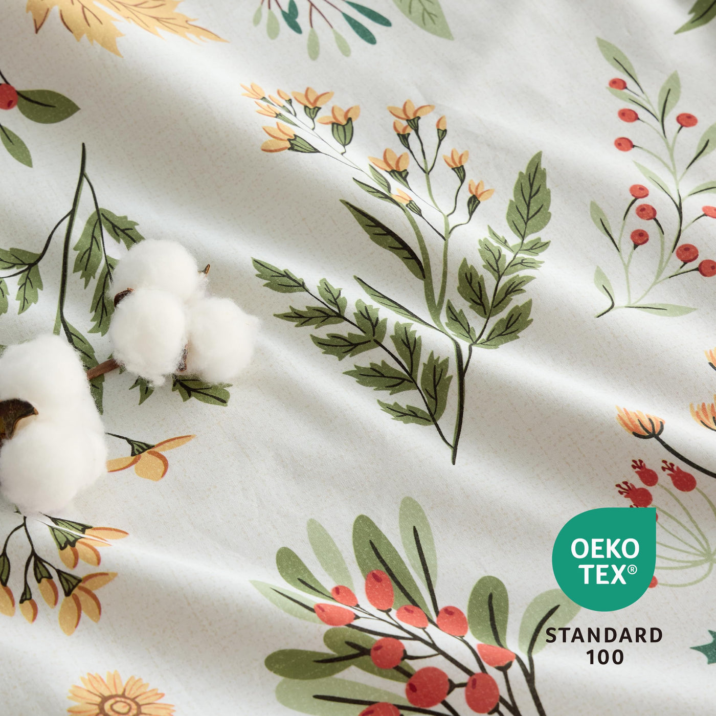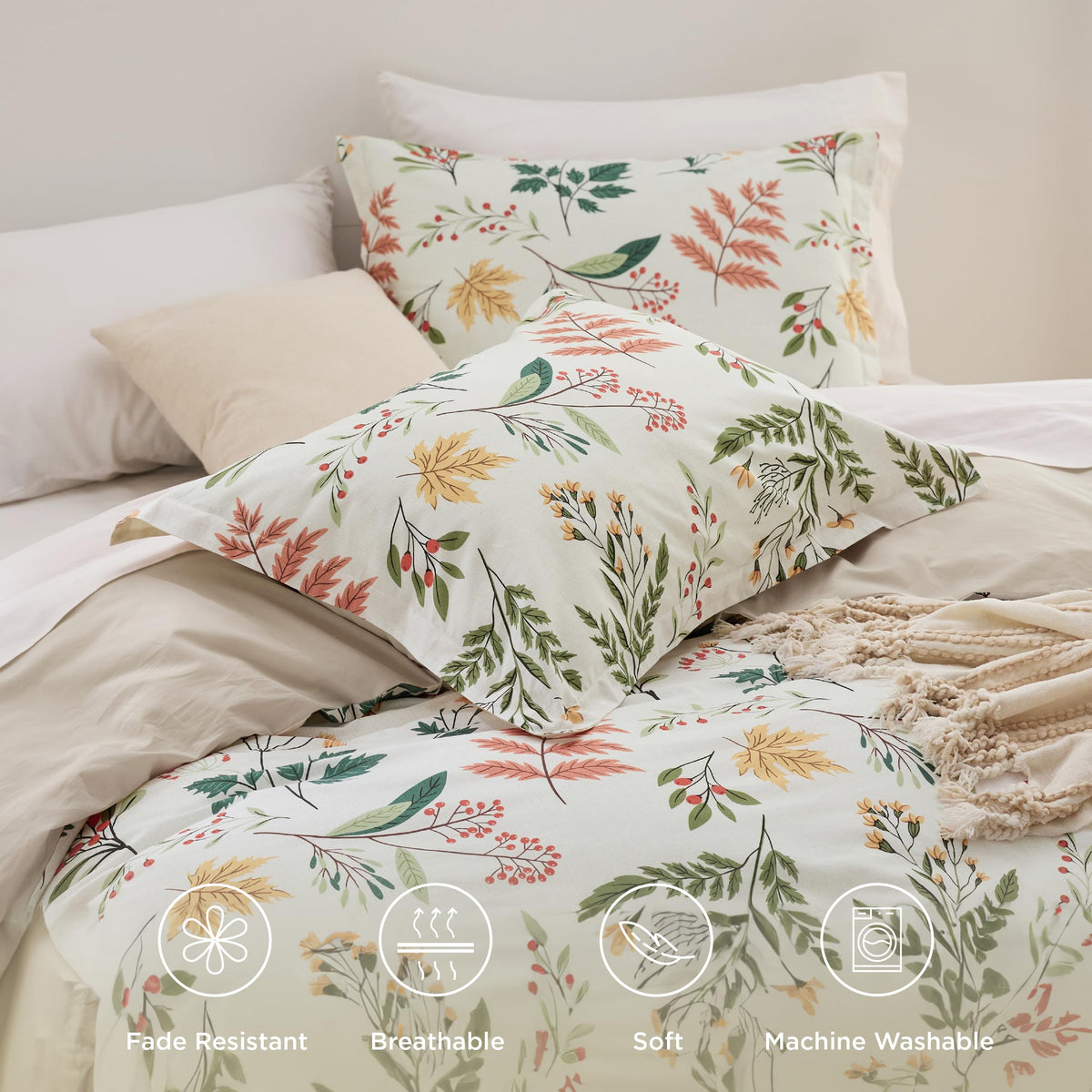 Bedsure Duvet Cover Queen Size - 100% Cotton Fall Flower Beige Duvet Cover Set With Zipper, Reversible Floral Bedding Comforter