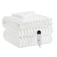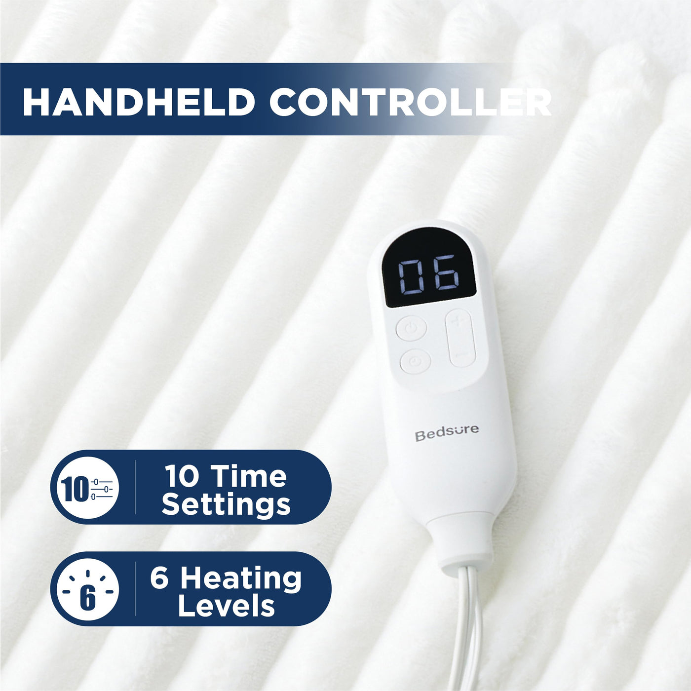 Bedsure Electric Blanket Twin - Thick Striped Flannel Electric Blanket, Heating With 10 Time Settings, 6 Heat Settings, And 8-Hour Timer Auto Shut Off, Gift For Grandma (62X84 Inches, White)