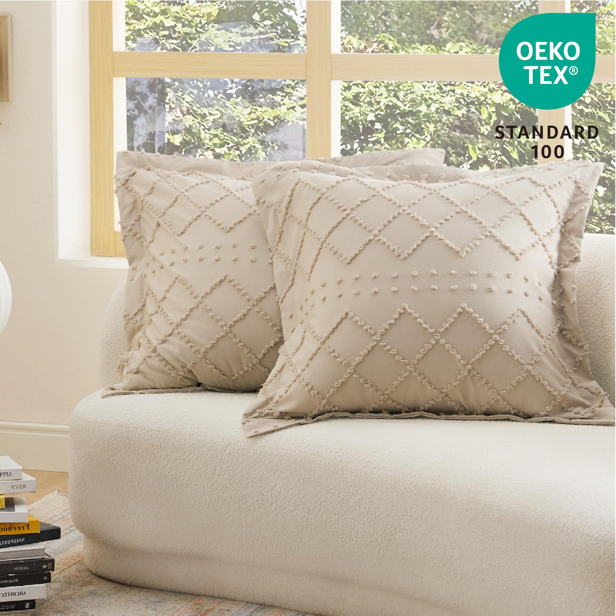 Bedsure Euro Sham Pillow Covers, Decorative Boho Throw Pillow Covers For Bed Pillows, Square Pillow Covers For Sofa And Couch, Ultra Soft And Breathable Pillow Cases, Khaki, 26X26 Inches