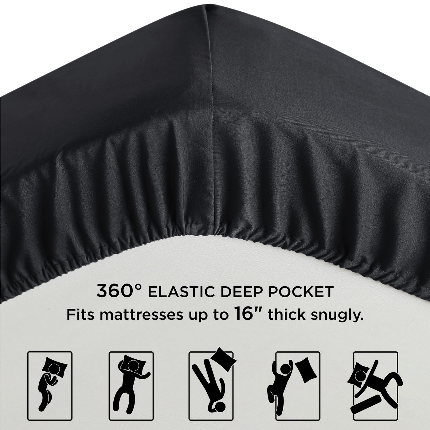Bedsure Fitted Sheet Queen Size Only - Brushed Microfiber Bed Sheets, Ultra Soft & Breathable, Fade Resistant & Easy Care (Black, 60X80+16 Inches, 1 Piece)