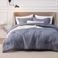Bedsure Full Comforter Set - Denim Grey Full Size Comforter, Soft Bedding For All Seasons, Cationic Dyed Bedding Set, 3 Pieces,