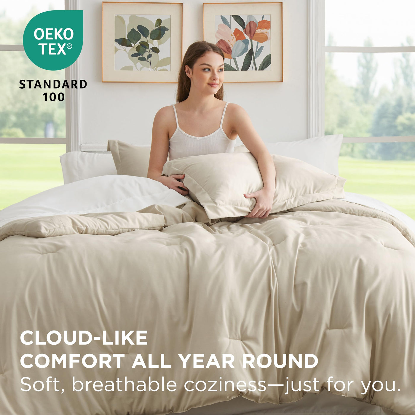 This bed-in-a-bag Set Showcases a Refined Contrasting Color Design. The Interplay of Colors Between The Pillow Shams and Bed Sheets Adds Depth, Effortlessly Enhancing Any Interior Decor Style.