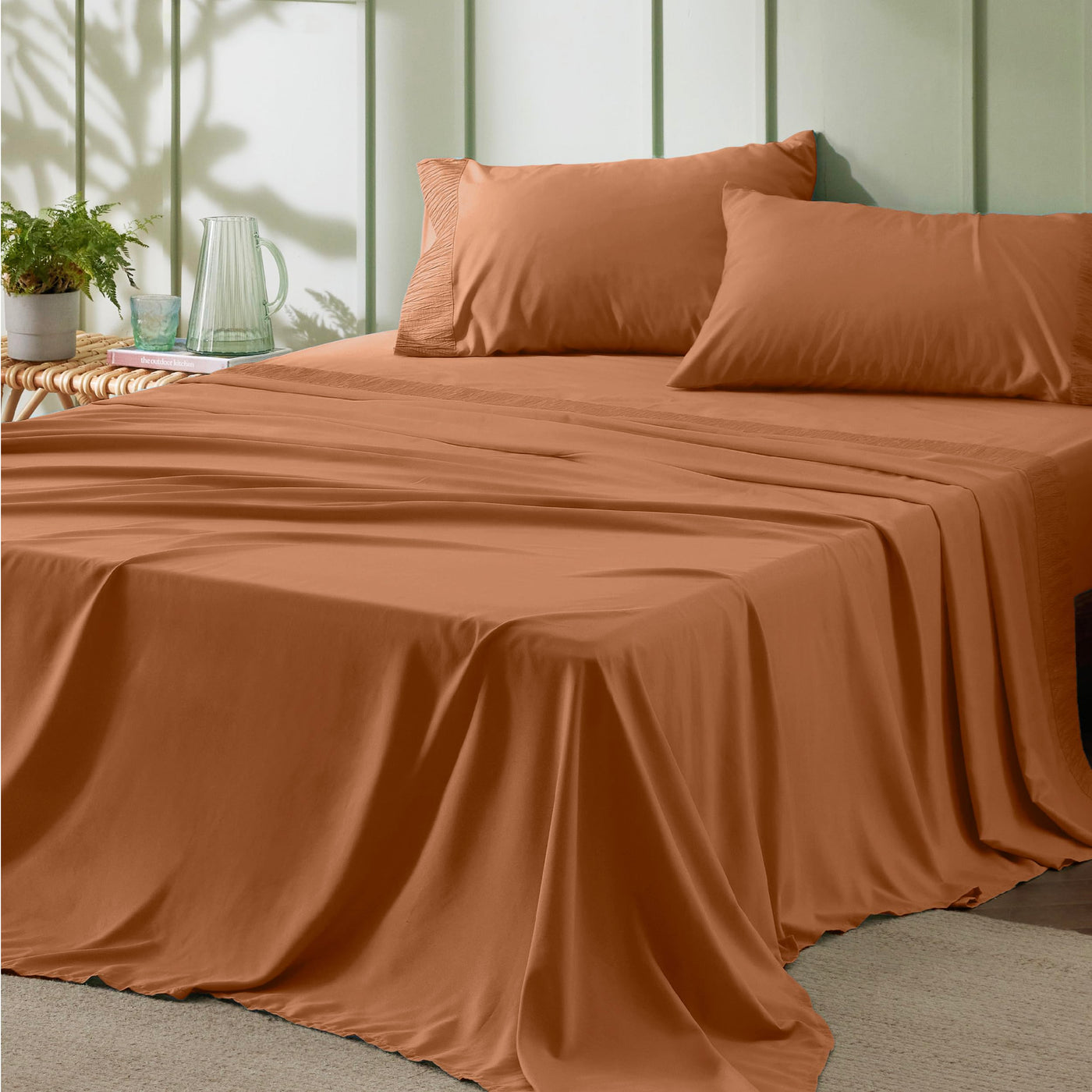 Bedsure Full Size Sheet Sets - Soft Sheets For Full Size Bed, 4 Pieces Hotel Luxury Terracotta Sheets Full, Easy Care Polyester