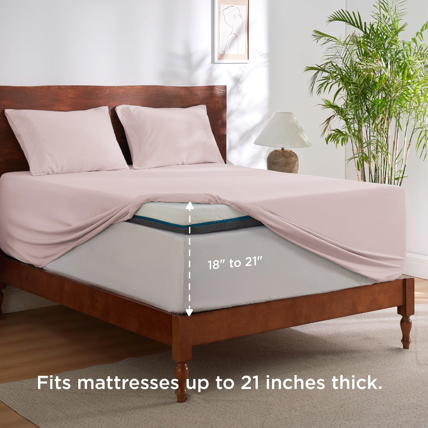 Bedsure Gentlesoft Deep Pocket Full Size Bed Sheets Set - Fits Mattresses Up To 21 Inches Thick - 4 Piece Bed Sheets, Moisture Wicking, Cooling Bedsheets & Pillowcases, Easy & Secure Fit, Blush Pink
